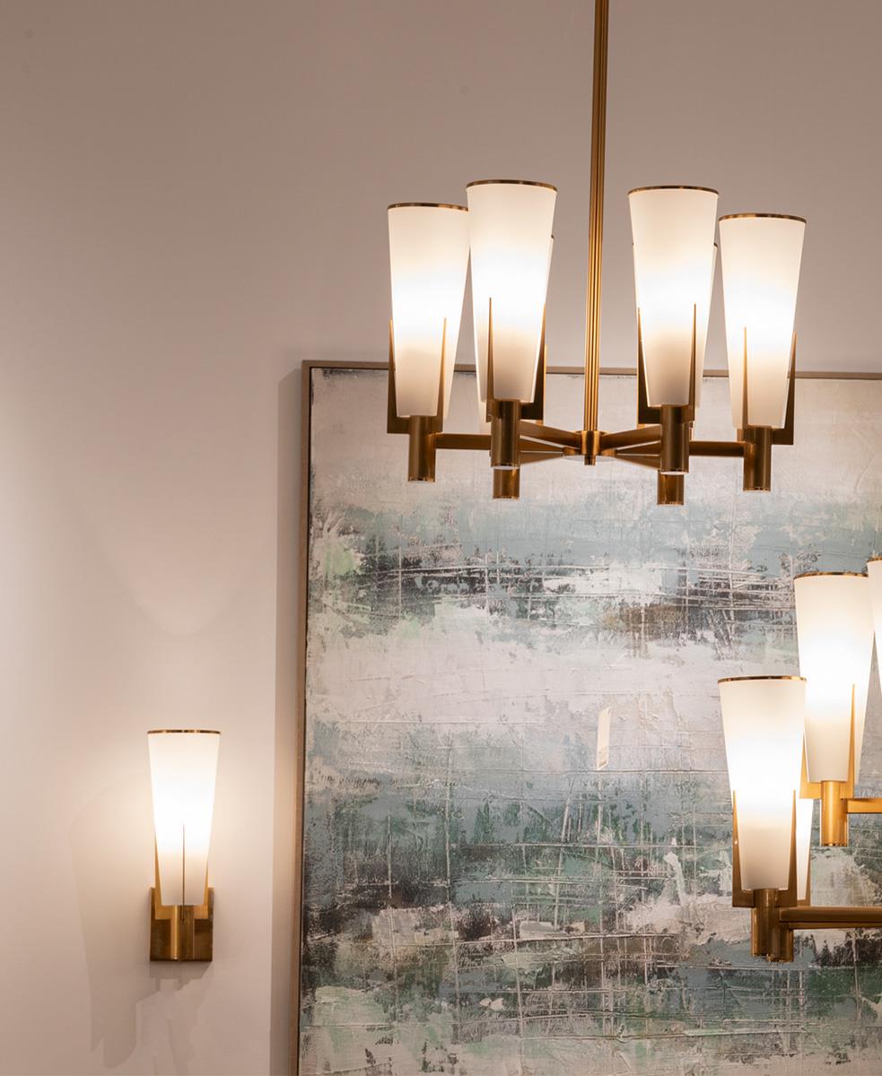 Zarif cam ve altın metal duvar lambasıyla lüks ve sofistike bir dokunuş katın.