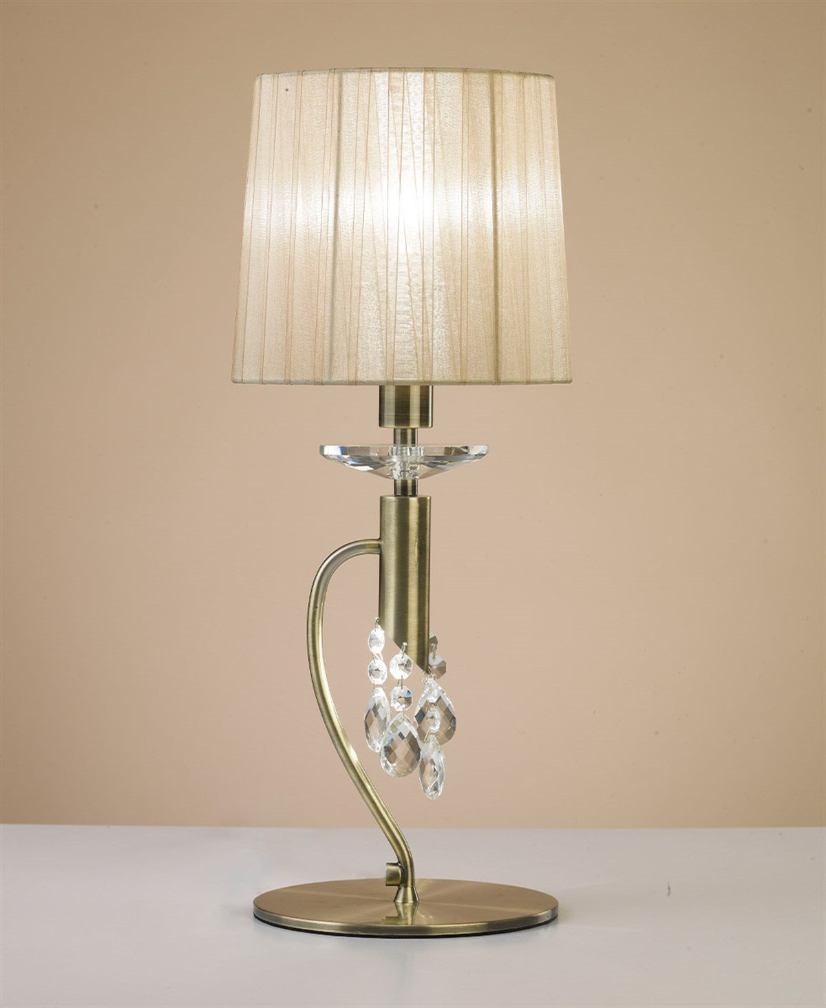 Bronz renk metal Kumaş sarma şapka Şeffaf kristal Çap: 18 cm Yükseklik: 48 cm Ampul Adedi: 2 Ampul Gücü: 20 W + 5 W Ampul Türü: E27 + G9 Menşei İspanya Fiyatlarımıza ampul dahildir.
