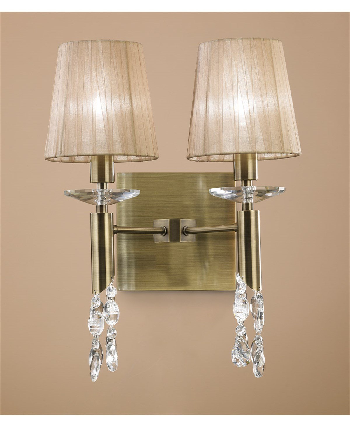 Bronz renk metal Kumaş sarma şapka Şeffaf kristal Genişlik: 33 cm Duvardan mesafesi: 19 cm Yükseklik: 45 cm Ampul Adedi: 4 Ampul Gücü: 2 x 20 W + 2 x 5 W Ampul Türü: E14 + G9 Menşei İspanya Fiyatlarımıza ampul dahildir.