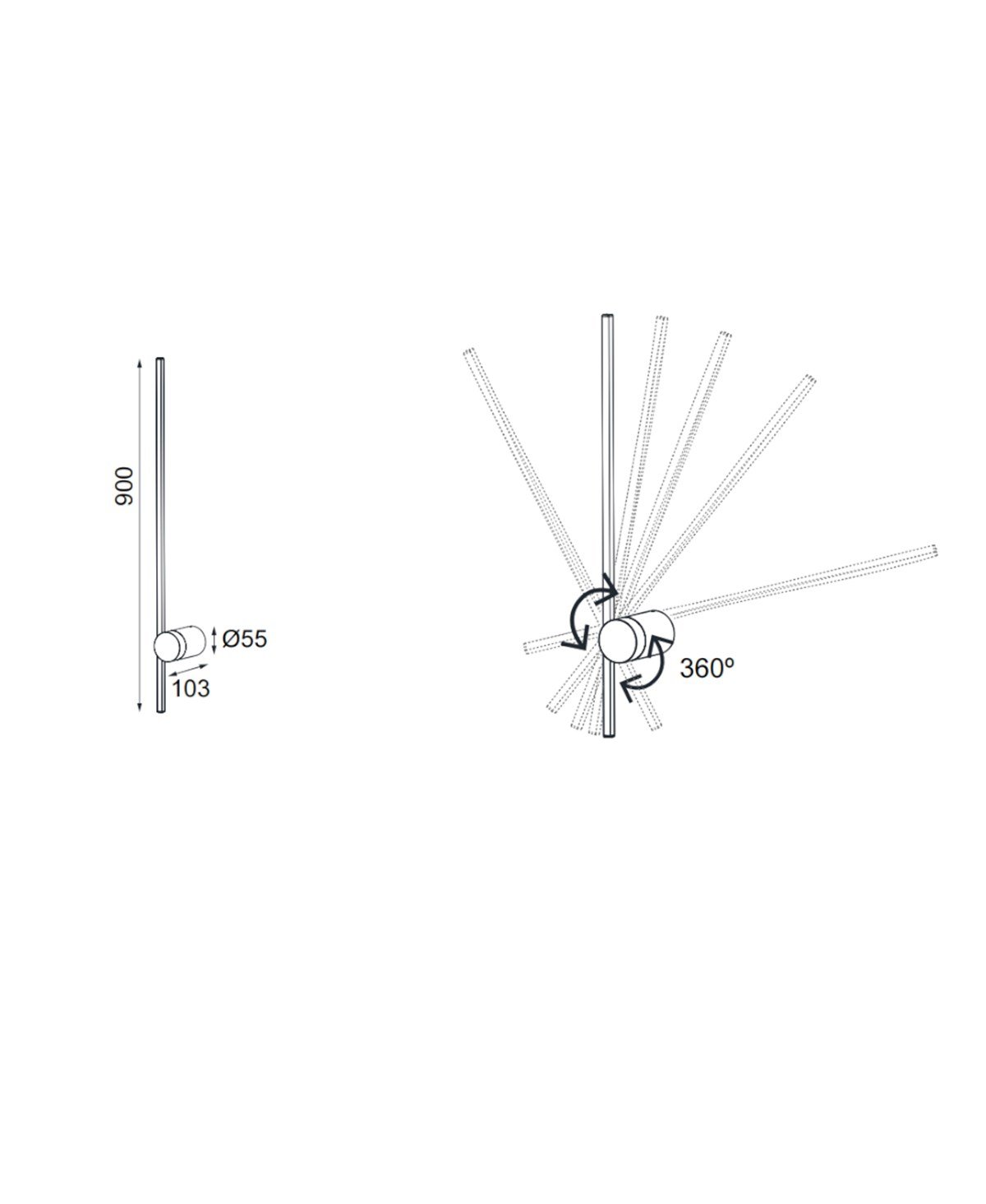 360° dönebilen kola sahip aydınlatma alüminyumdan yapılmıştır.