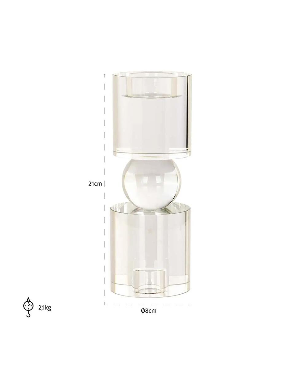 Zahra şamdan, camdan üretilmiştir. Şeffaftır ve modern bir iç mekana iyi uyum sağlar.