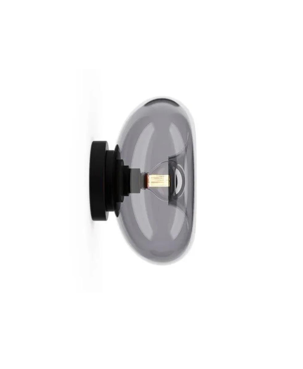 Gri camlı, göz alıcı güzellikte bir duvar lambası.